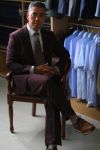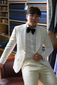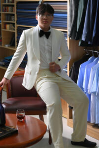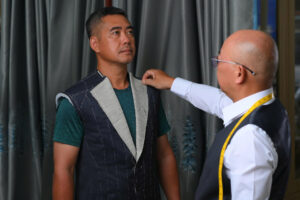 Sau khi chỉnh sửa vừa vặn theo thông số lần fitting 1, về cơ bản bộ suit đã được hoàn thiện 90%. Lần này khách hàng sẽ thử để trải nghiệm vận động và chỉnh sửa những chi tiết trang trí cuối cùng.